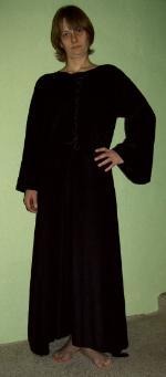mittalt. Kleider, alle 2teilig mit ausgestellten Ärmeln, das1.rot/schwarz,100% Leinen, angesetzte Schürze,an Ärmeln u. Schürze mit schw. Spitze abgesetzt das2.weiß/hellgrün, Viskose/Leinen,Unterkleid weiß u. länger wie das Obere mit u. ohne Gürtel zu tragen das3.schwarz, Unterteil aus Waschleder, das Obere aus Wollstoff