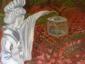 Umstandskleid:fuchsia/ grün, Leinen/BW, zum Binden unterm Busen, leicht ausgestellte Ärmel